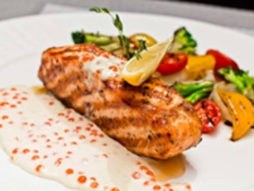 Стейк из сёмги с овощами гриль