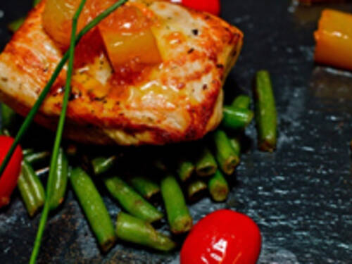 Стейк индейки на стручковой фасоли и чатни из ананаса